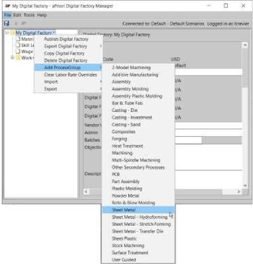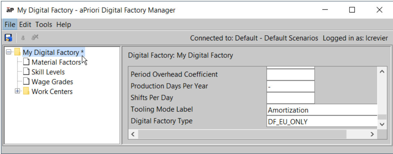 通过【几何成本估算软件】数字工厂管理器,您可以管理数字工厂并编辑每个数字工厂中包含的数据。更多信息,请参阅管理数字工厂编辑数字工厂