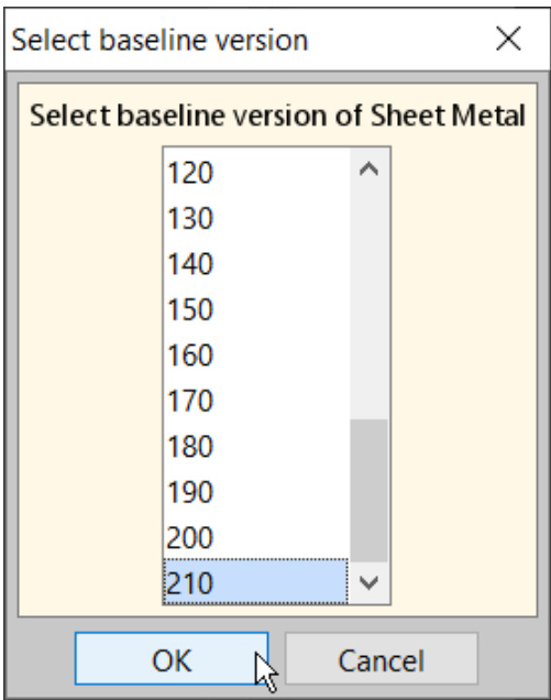 6. 在"选择基线版本"窗口中,选择要使用的成本模型版本。