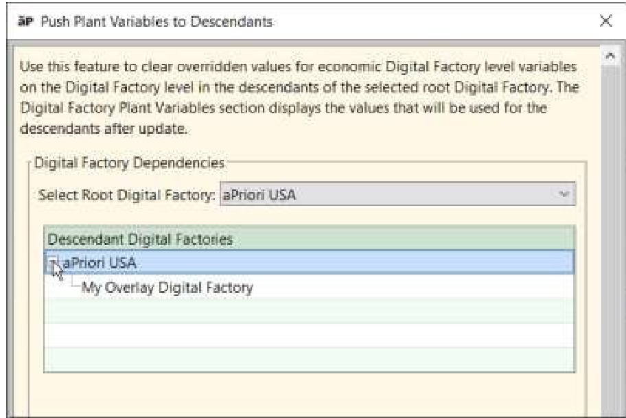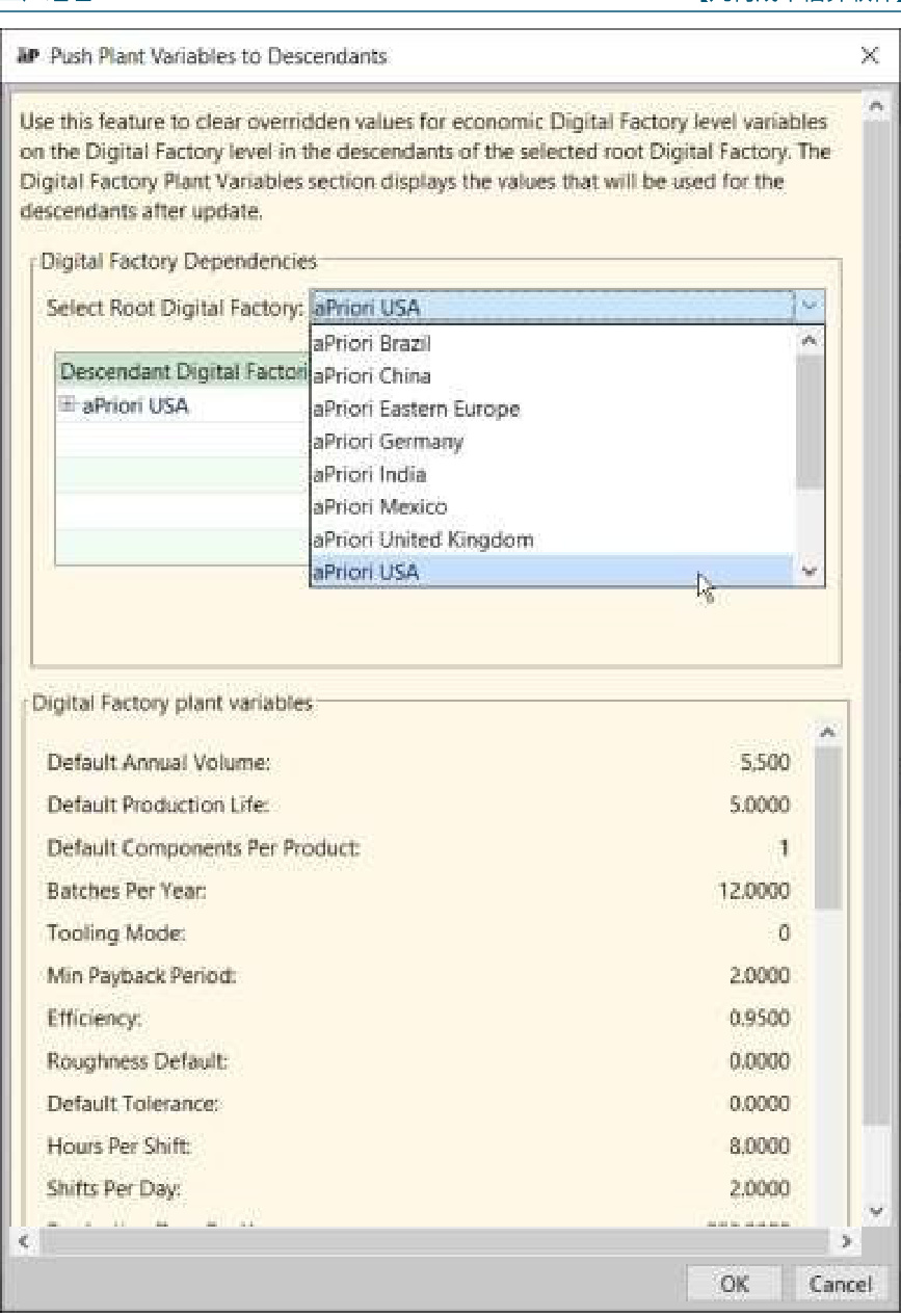 在【几何成本估算软件】中,全局变量在站点级别影响所有数字工厂的特定工艺组。